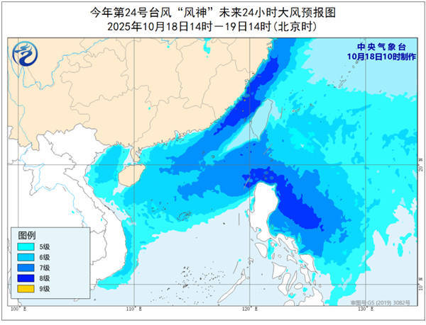 大风预报:受冷空气和“风神”的共同影响,18日14时至19日14时,台湾海峡、巴士海峡、南海北部、台湾沿海、福建沿海将有6-8级、阵风9-10级的大风。